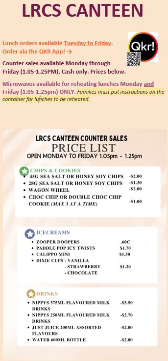 Students are able to access the sandwich press and microwaves in the canteen on Mondays and Fridays.